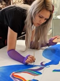 Lisa is an Ottawa based visual artist and writer. Born in Austria, she immigrated to Canada at age 42. She began creating intuitive and mixed media art after recurring dreams of teal and gold paintings. Her love of bright colours led her to do acrylic pouring. Her pictures often show waves and nebulae. Growing up, she was taught Super 8 filming and photography at home. She went on to study philosophy at Vienna University and discovered her love of writing. Lisa traveled Europe and the Middle East, always immersed in the local culture. An adventurer at heart, she is enjoying the freedom creating art is giving her. Lisa is a social activist fighting homelessness and poverty.